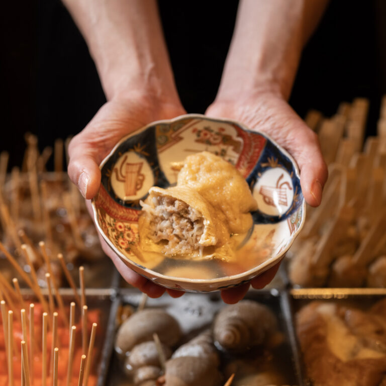 希少な能登牛の脂を、お揚げがじゅわっと受け止める。炭の薫香を纏った、贅沢すぎるいなり。
